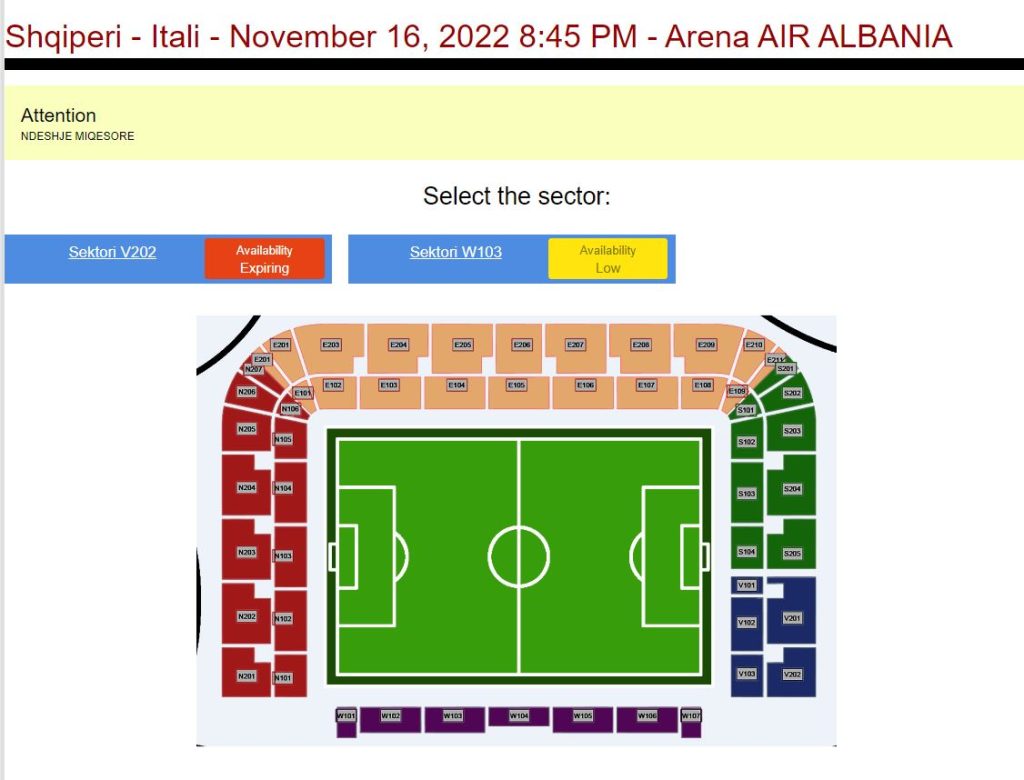 Në faqen ku blihen biletat për këtë ndeshje, gjatë pasdites kanë “avulluar” edhe biletat e fundit që kishin mbetur, duke bërë që tashmë të jenë të disponueshme të tilla vetëm në sektorët e rezervuar për tifozët e Italisë.