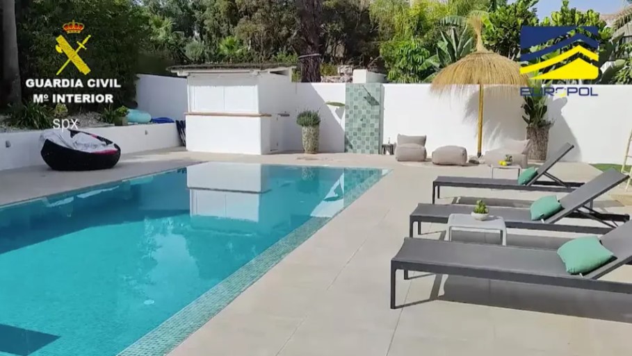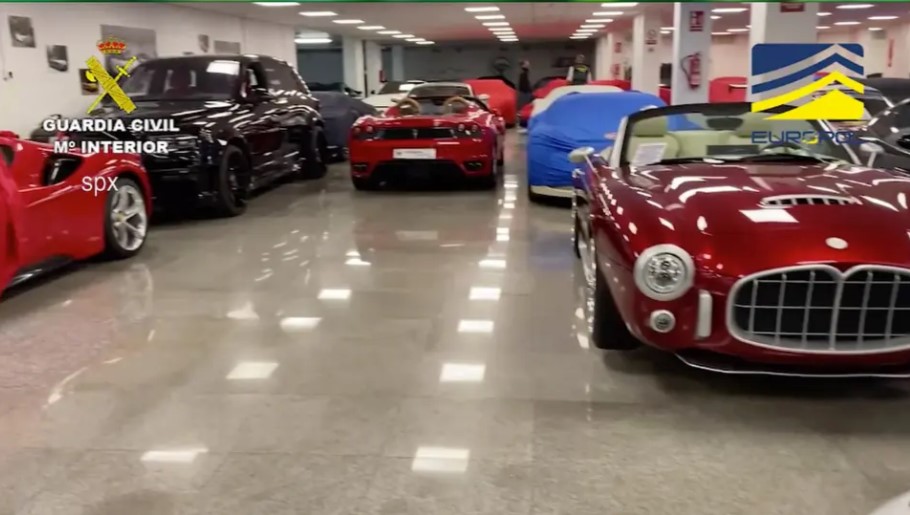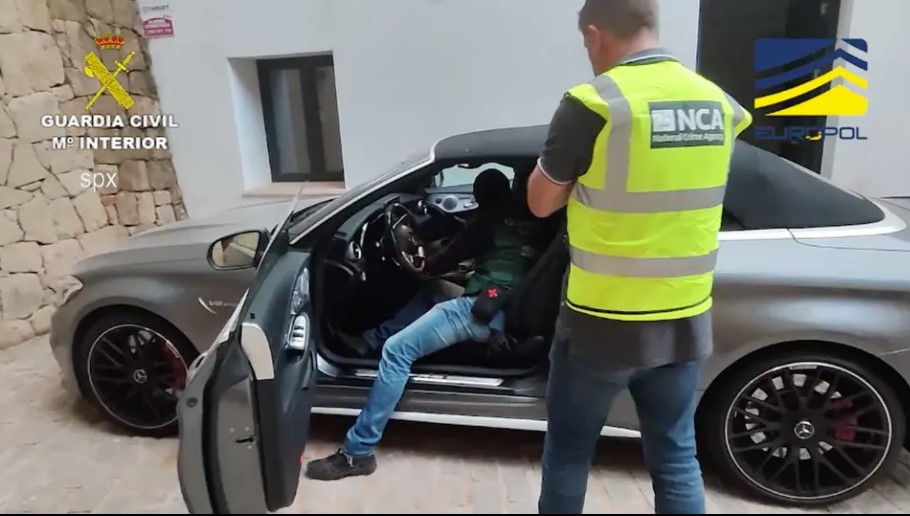 Një video e publikuar nga Europol tregoi agjentët duke arrestuar të dyshuarin dhe duke sekuestruar makina luksoze dhe shuma të mëdha të fshehura parash.