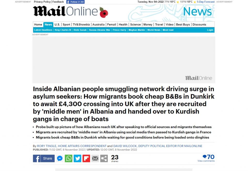 Media britanike Daily Mail ka publikuar një investigim mbi rrjetin e trafikut të emigrantëve të paligjshëm nga Shqipëria drejt Mbretërisë së Bashkuar.