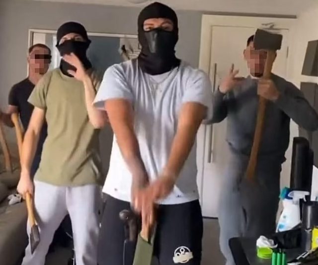 Një tjetër video tregon një bandë të maskuar të armatosur me hanxhar, thika dhe çekiç duke goditur derën e përparme të një shtëpie kanabisi për të cilën thuhet se ndodhet në Londër. Një video tregon dy burra që hyjnë në një shtëpi me kanabis. Njëri me kapuç të zi dhe mban një çekiç hanxhar në një derë të mbyllur, ndërsa shqiptari brenda thërret furishëm për ndihmë.