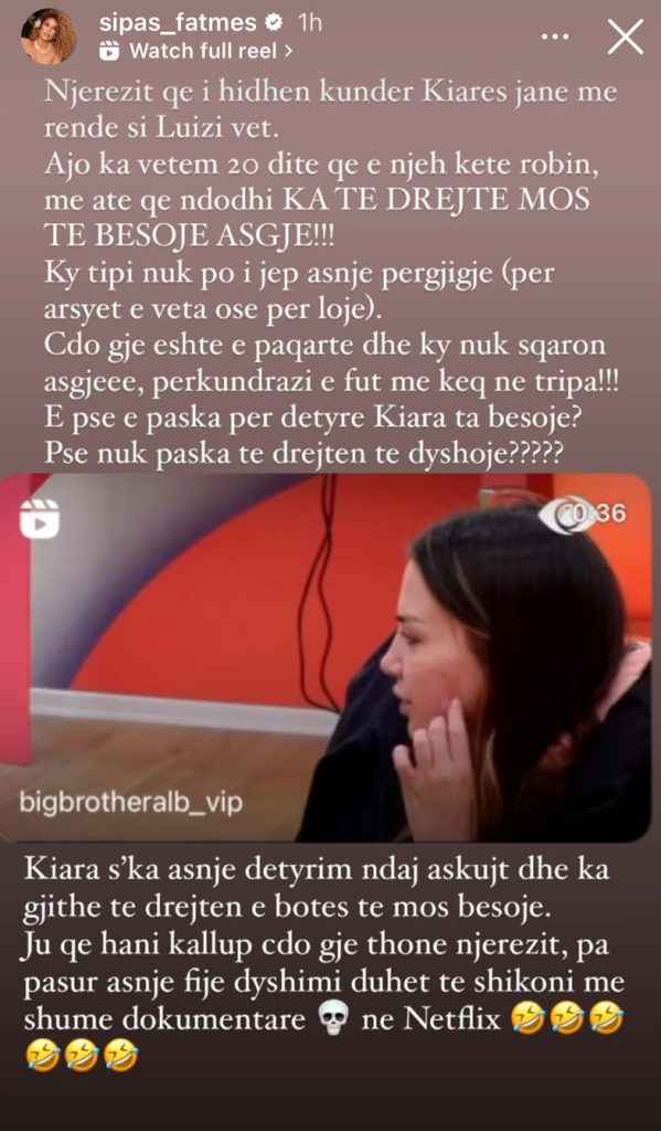 Ajo që po ndodh, veç diskutimeve të zjarrta nga vetë banorët e “BBV2” ku një pjesë e mbështesin dhe një pjesë i kanë dalë kundër, e njëjta panoramë paraqitet edhe në rrjetet sociale nga personazhet e famshme.