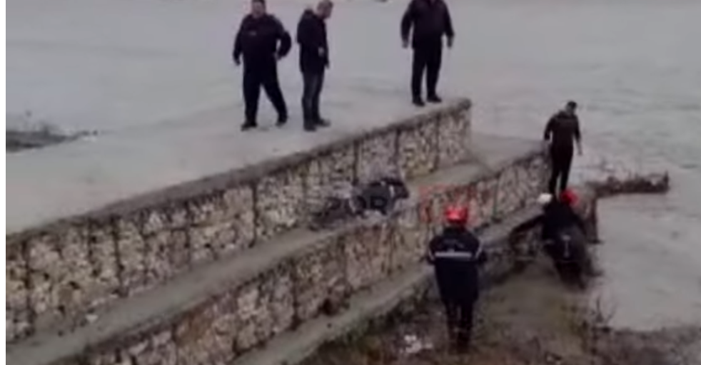 Në pamje, shihet disa persona mbajnë barelën dhe më pas nxjerrin trupin e gruas nga zona e lumit me fadromë.