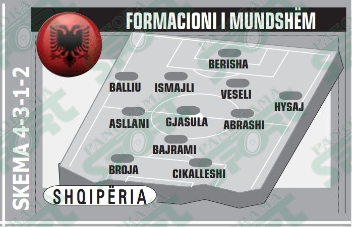 FORMACIONI– Duket si e pabesueshme, por trajneri i Kombëtares Edi Reja ka vendosur që këtë ndeshje të ndryshojë skemën që ai aplikon. Kështu që nuk do të përdoret një 3-5-2, siç e kemi parë në mbi 90 për qind të rasteve të luajë Shqipëria, por Reja është “dorëzuar” dhe do të kalojë në një 4-3-1-2. 76-vjeçari ka vendosur që ta nisë me katër lojtarë mbrapa.