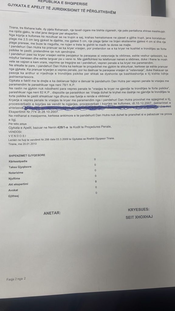 Në vendimin e gjykatës të shpallur në vitin 2010 të siguruar nga gazetari i Panorama TV, Ervin Leka tregohet si e ka kryer krimin e rëndë dhe më pas është larguar qetësisht nga banesa.