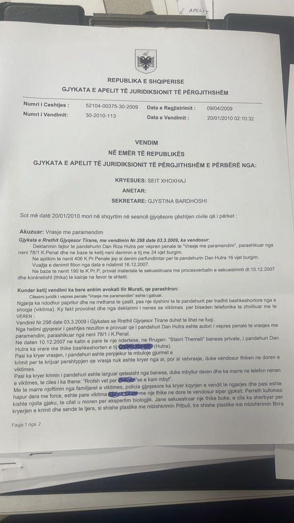 Autori i masakrës së trefishtë ditën e sotme në Tiranë, Dan Hutra rezulton autor i një tjetër krimi të rëndë të ndodhur në vitin 2007 ku ka vrarë me thikë bashkëshorten e tij.