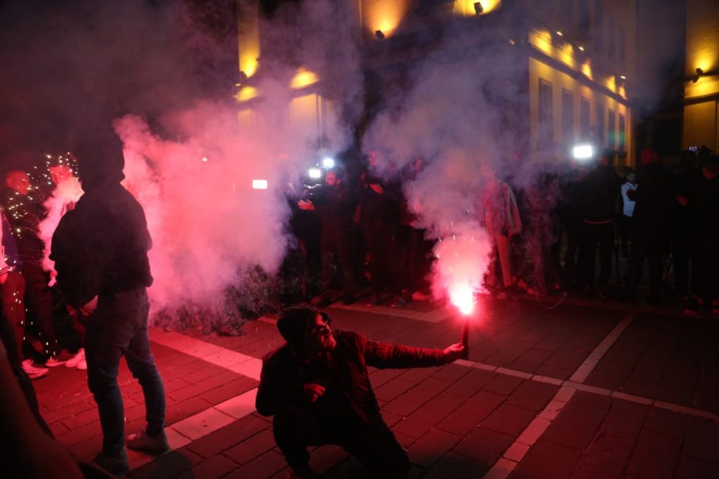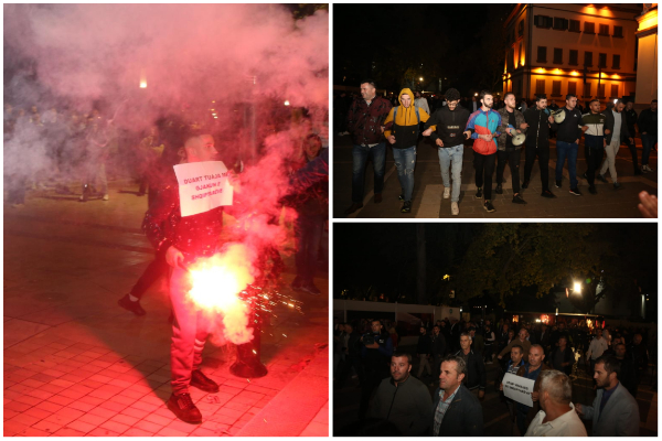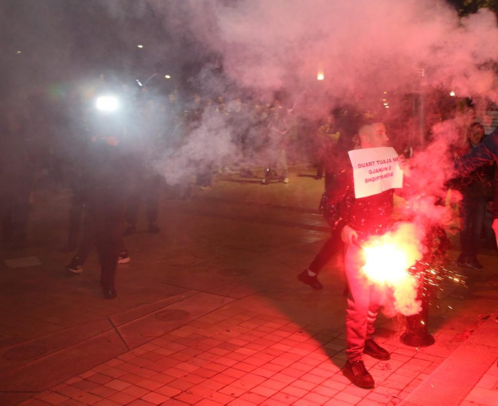 Më pas ata janë kapur për krah me njëri tjetrin duke marshuar drejt kryeministrisë përmes bulevardit “Dëshmorët e Kombit”.