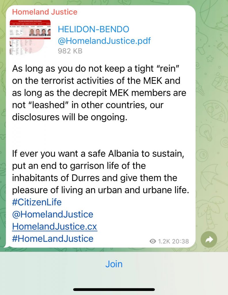 Në rrjetin social Telegram, Homeland Justice publikuan të dhënat e Bendos sëbashku me një listë të të gjitha udhëtimeve të pretenduara jashtë vendit tonë.