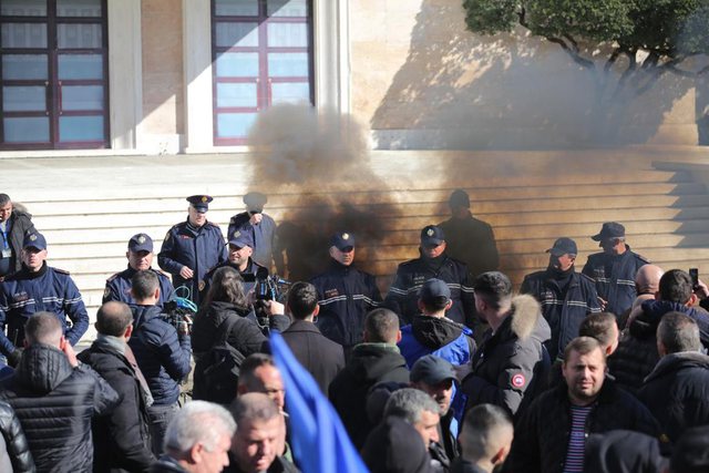 Dy persona janë shoqëruar në polici ditën e sotme për protestën. Mësohet se të dy personat me iniciale E. Gj., 45 vjeç dhe G. A., 30 vjeç janë shoqëruar dhe proceduar penalisht për veprat penale “Shkelja e rregullave mbi lëndët plasëse, djegëse dhe radioaktive” dhe “Prishja e qetësisë publike”.