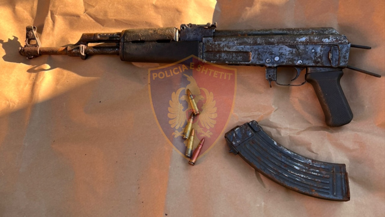 Gjatë kontrollit në banesën e 56-vjeçarit, shërbimet e Policisë gjetën dhe sekuestruan, në cilësinë e provës materiale, një armë zjarri automatik, një krehër dhe municion luftarak”.