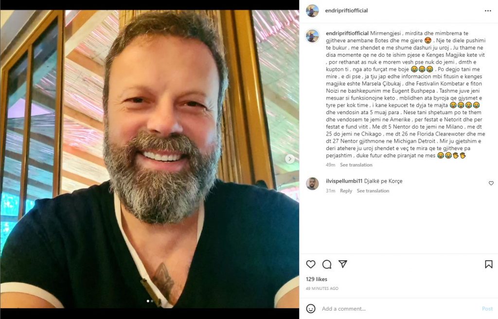Komentet Prifti i bëri përmes një postimi në Instagram, ku tregoi se fituese e “Këngës Magjike” do të jetë këngëtarja Marsela Çibukaj, ndërsa sipas tij “Festivalin Kombëtar” do e fitojë Noizy në bashkëpunim me Eugent Bushpepën.