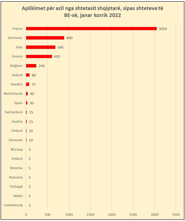 Por, të dhënat zyrtare të Autoriteteve Britanike tregojnë se rreth 4729 shqiptarë kanë hyrë në mënyrë të paligjshme në vendin e tyre dhe janë regjistruar si azilkërkues gjatë periudhës janar-qershor 2022, një shifër që është sa 80% e të gjithë kërkesave për azil në 27 shtetet e tjera të Bashkimit Europian, duke e çuar në total shifrën e aplikimeve në mbi 10 mijë. Nga totali i emigrantëve shqiptarë, 2165 persona kishin hyrë në vend me gomone (varka të vogla). Sipas të dhënave zyrtare, shqiptarët u renditën të parët për nga numri i madh që hynë në Britaninë e Madhe duke rrezikuar jetën.
