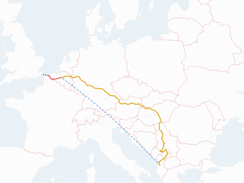 Midis dokumenteve të hedhura përpara kalimit të tyre në Kanal ishin prenotime treni që tregonin se menjëherë pas uljes në Bruksel, Leandra dhe Amelia kapën një shërbim për në Lille, pak përtej kufirit francez. Biletat i kushtonin 68 euro. Ato mbërritën pak para orës 17:00 dhe në orën 17:50 ishin në një tren tjetër për në Dunkirk në bregdet, një udhëtim 30 minuta. Këtu, ato do të bashkoheshin me qindra të tjerë që përpiqeshin të arrinin në Britani nga një bazë, nga një linjë hekurudhore e braktisur e quajtur “Xhungla e re”.