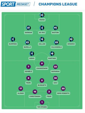 Në program janë dy teste jetike, kundër Barcelonës në Champions dhe kundër Sassuolo-s në Serie A, kërkohet jo vetëm rezultat, por dhe lojë. Inzaghi duhet të zgjidh disa çështje shumë të rëndësishme brenda ekipit, duke nisur nga porta, ku vijon rotacioni në Champions, për të vijuar me dyshen De Vrij-Skriniar, shumë larg formës së një sezoni më parë, e për tu ndalur më pas në mesfushë dhe në sulm. Pas sfidës kundër Romës, Inzaghi përmendi mungesa e Brozovic, por edhe ndaj Barcelonës është i detyruar t’i besoj Kristjan Asllanit.