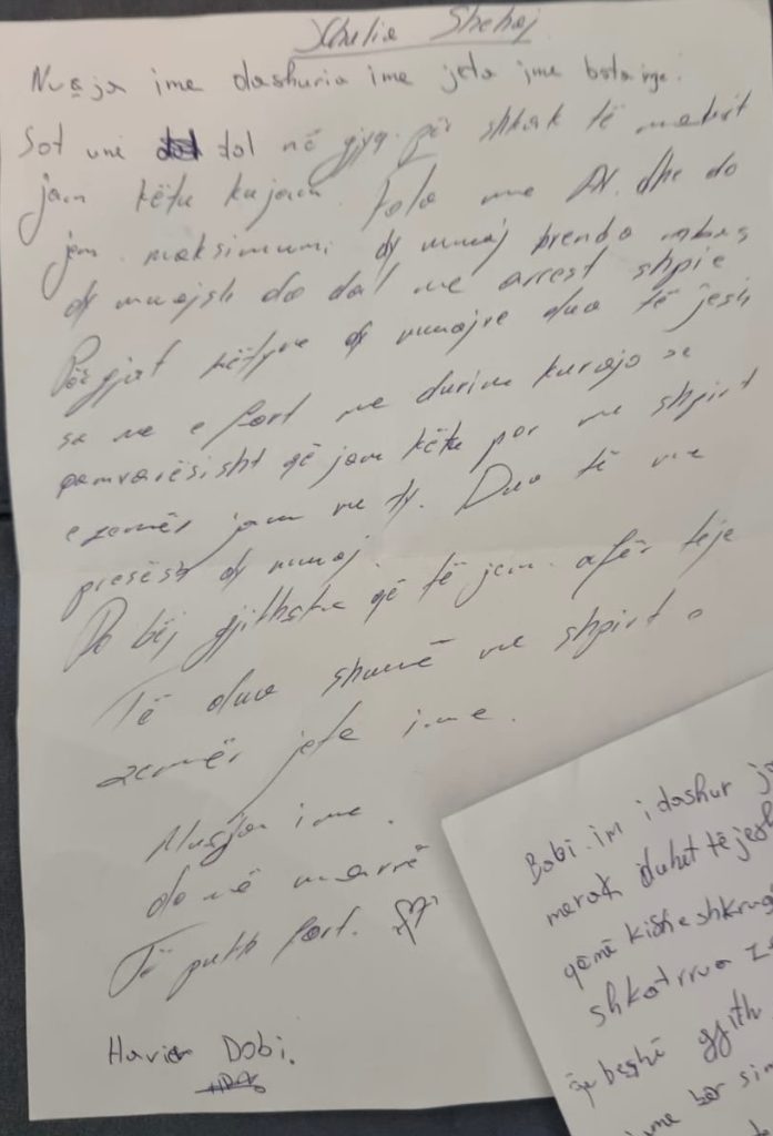 Zbulohen letrat e Havier Dobit për të dashurën dhe babanë e tij pas arrestimit nga policia për shkak se akuzohet se bashkë me nënën e tij kanë grabitur shtëpinë e zyrtares së kryeministrisë Alda Klosi.