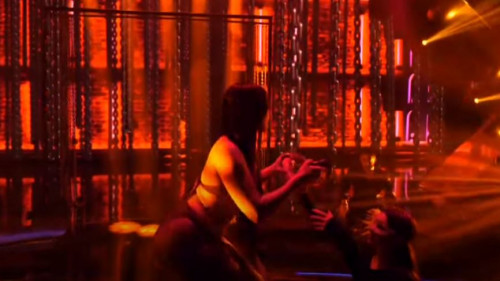 Ajo e mbylli performancën duke i vendosur takën në kokë balerinit dhe i derdh alkool në fytyrë, skena erotike që nuk lënë vend për imagjinatën.