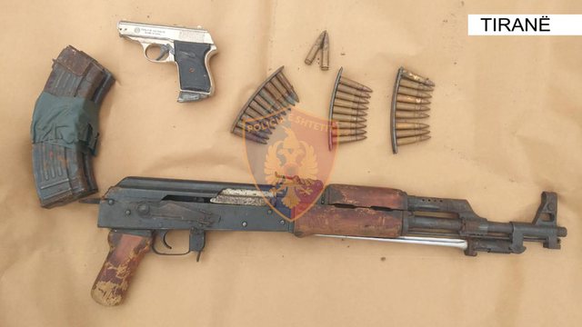 Gjatë kontrollit në ambientet e banesës së tij, janë gjetur të fshehura 1 armë zjarri pistoletë, 1 armë zjarri automatik, 2 krehra dhe municion luftarak.