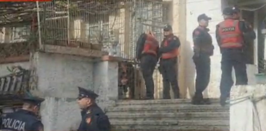 Policia aktualisht ka rrethuar zonën dhe pretendon se kanë në dorë një vendim gjykate për të liruar pallatin pasi ai do të shembet.
