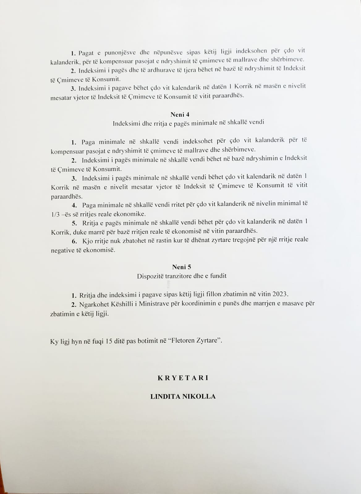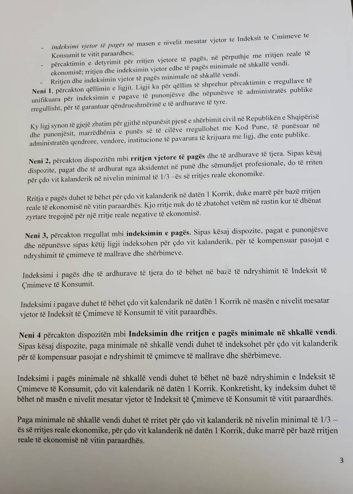 Sipas tij, propozimi është që indeksimi i pagave të bëhet çdo 1 korrik në të njëjtën masë me inflacionin e vitit paraardhës.
