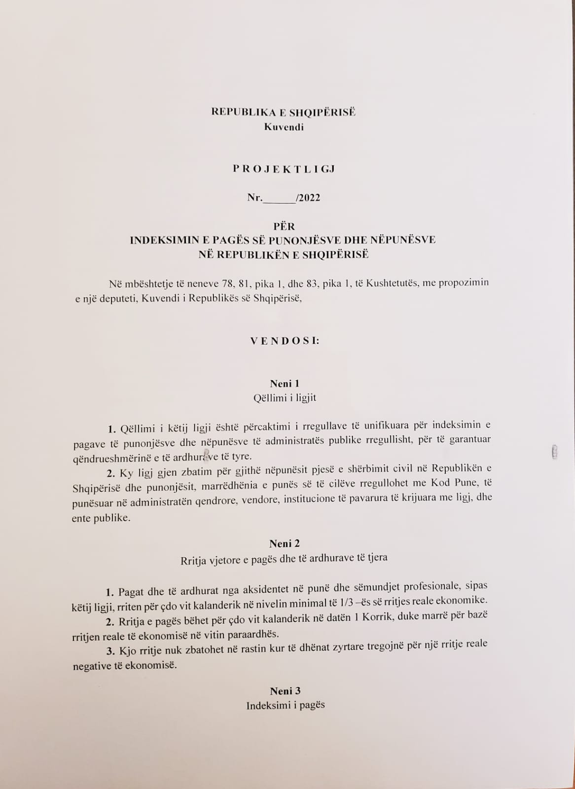 Partia e Lirisë ka depozituar në Kuvend këtë sesion parlamentar një projektligj për rritjen e pagës së administratës publike sa herë ka rritje ekonomike.