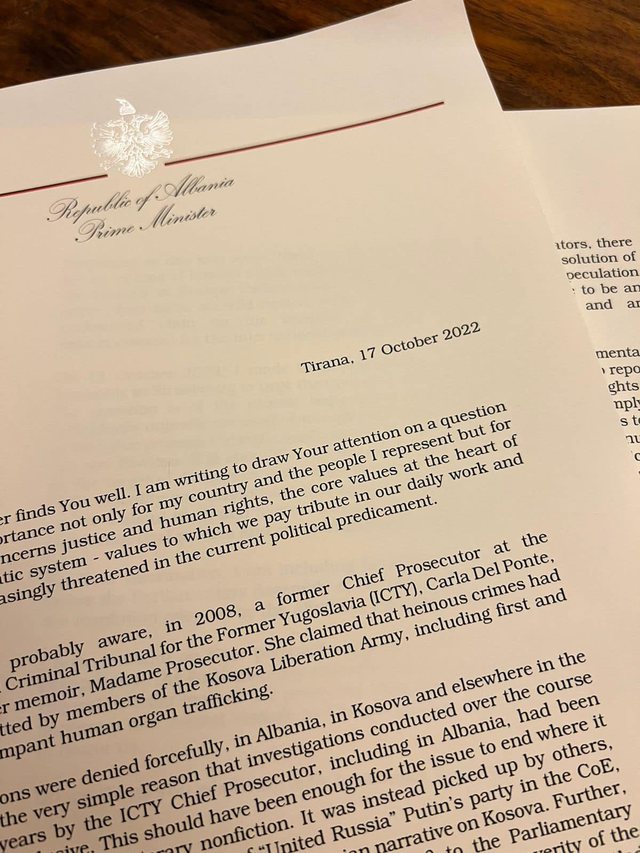 Kryeministri Edi Rama u është drejtuar kryetarëve të shteteve dhe Qeverise të të gjitha vendeve anëtare të Këshillit të Europës me një letër. Rama thotë se këtë letër e ka shkruar për të kërkuar heqjen e njollës së turpit të trafikimit të organeve njerëzore mbi kombin tonë dhe mbi vetë Këshillin e Europës.