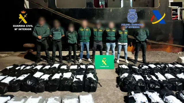 Gjatë kontrollit, në ambientet e përbashkëta u gjetën pako me drogë. Më pas 15 anëtarët e ekuipazhit u arrestuan dhe anija u dërgua në portin e Tenerife.