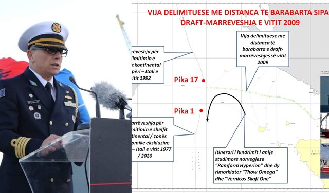 Prej më shumë se një javë, dita e tetë, anijet studimore të kontraktuara nga Qeveria e Greqisë po kryejnë studime për hidrokarbure në Detin Jon (Blloku 1), duke përfshirë edhe zonën e pakufizuar (të kontestuar) të shelfit kontinental midis Shqipërisë dhe Greqisë. Shteti bregdetar, sipas nenit 77 të UNCLOS 1982, ka të drejta sovrane mbi burimet natyrore në shelfin e tij kontimental. Por, Shqipëria dhe Greqia nuk kanë marrëveshje për kufizimin e shelfit kontimental. Hapësira detare midis pikes fundore jugore (Pika 17) të marrëveshjes Shqipëri – Itali e vitit 1992 dhe pikës fundore veriore (Pika 1) të marrëveshjes Greqi – Itali e vitit 1982 është një zonë e pakufizuar, si për shelfin kontinental edhe zonën ekonomike ekskluzive midis dy shteteve. Edhe nëse Shqipëria dhe Greqia do të kishin të kufizuara shelfet kontinentale respective, sipas nenit 142 të UNCLOS 1982, shteti bregdetar njofton shtetin fqinjë kur bën studime pranë kësaj vije kufizuese. Shqipëria është palë në UNCLOS 1982 nga vitti 2003 dhe Greqia nga viti 1995.