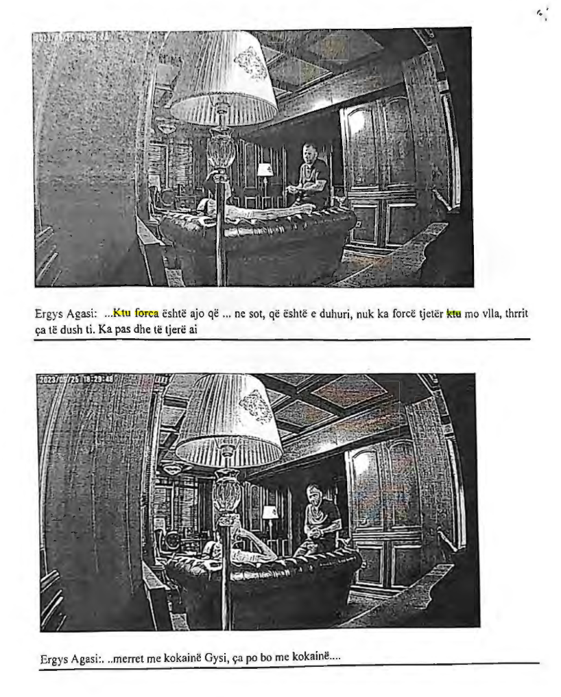 - Përgjimet telefonike dhe ambientale zbuluan gjuhën e kodeve dhe sigurinë me të cilën vepronte grupi. Në shumë raste, ata flisnin hapur për planet e tyre, të bindur se ishin mbi ligjin. Në një përgjim të datës 06.11.2023, Ergys Agasi theksonte se “forca e tyre” në sistem ishte e tillë sa askush s’mund t’i prekte: “Ktu forca është ajo që… nuk ka forcë tjetër ktu mo vlla” – dëgjohet të thotë ai, duke iu mburrur bashkëbiseduesit se “sot jemi shumë më lart” se të tjerët. Në një tjetër bisedë, Agasi i ankohet Ermal Beqirit se një person po i “dekonspironte” tek rivalët, gjë që tregon shqetësimin e grupit për informatorë të mundshëm. Mirëpo, me policinë në anën e tyre, ata ndiheshin të paprekshëm – dhe këtë e tregon një episod paradigmatik: Ne nje tjeter moment Agasi tregon dhe forcen e tij edhe perballe kabinetit qeveritar me konkretisht Damian Gjiknurit i cili ishte bere pengese: