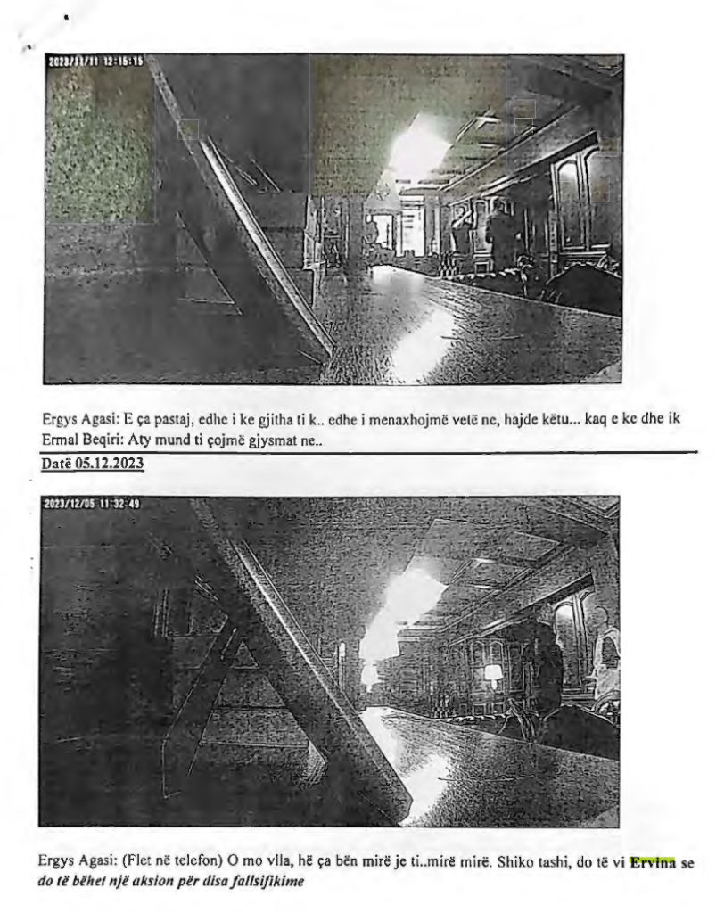 Në një bisedë të përgjuar më 5 dhjetor 2023, Ergys Agasi flet në telefon dhe informon se “do të vijë Ervina se do të bëhet një aksion për disa falsifikime… dhe që mos dalë fjala, se duan që t’i plasin mrena… me kujdes”. Kjo ngre dyshimin se dikush nga brenda policisë (për shembull, Erjon Ismaili) e kishte vënë në dijeni Agasin për një operacion të afërt policor, duke i mundësuar atij të marrë masa për fshehjen e provave. Roli i Ismailit në rrëmbimin e Gerond Meçes po ashtu është objekt hetimi – dokumentet flasin se ai, së bashku me Agasin e Beqirin, planifikuan dhe organizuan aktin e rrëmbimit. Momentalisht, Erjon Ismaili është pezulluar nga detyra në polici dhe është nën masën e ndalimit të daljes jashtë vendit, teksa akuzohet për shpërdorim detyre dhe bashkëpunim në veprimtarinë kriminale. Rasti i tij ngre pikëpyetje të forta mbi infiltrimin e krimit të organizuar në organet ligjzbatuese.