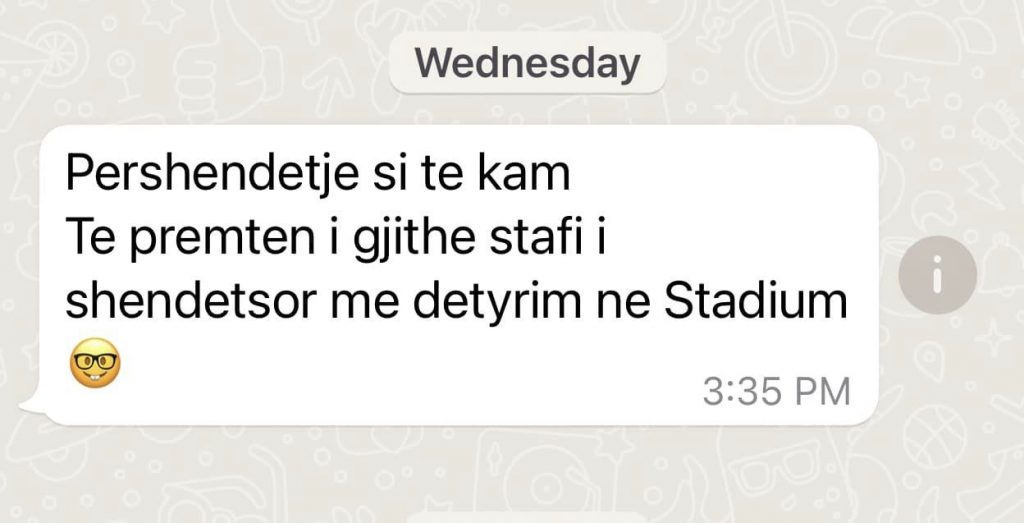 “Të premten i gjithë stafi shëndetësor me detyrim në stadium”, thuhet në njërin nga mesazhet e publikuara nga Boçi.