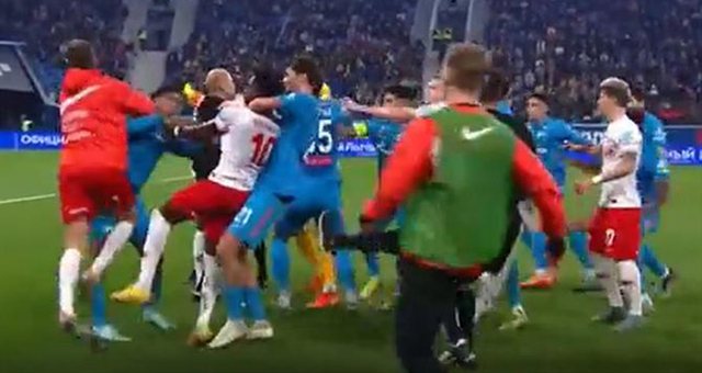 Ndeshja mes Zenit dhe Spartakut, këtë të dielë, në kuadër të ndeshjeve të fazës së grupeve për Kupën e Rusisë, u shoqërua nga një betejë e vërtetë mes lojtarëve. Konfuzioni filloi mes Promes (Spartak) dhe Barrios (Zenit), teksa përfundoi në një sherr të përgjithshëm grushtash dhe shkelmash. Arbitri u përpoq të qetësonte gjërat, por pa rezultat.