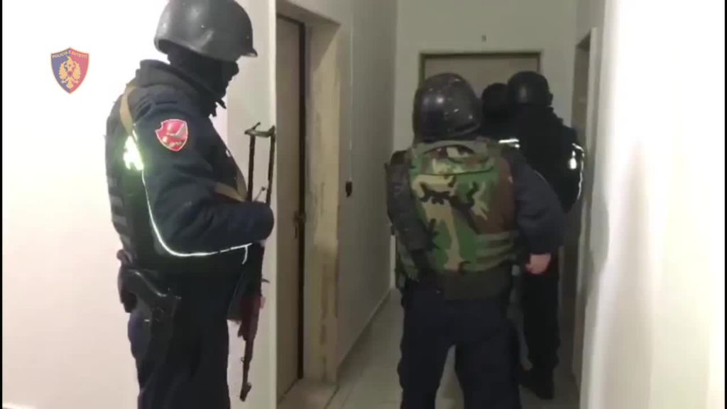 Policia e Vlorës ka publikuar pamjet nga momentet kur është kontrolluar një nga banesat e dyshuara se përdorej nga pjesëtarë të grupeve kriminale.