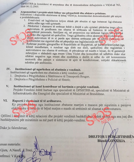 VKM e vjetër nr. 763 datë 06.12.2005 kishte këtë përmbatje “Ndalohet, vendosja e perdeve , errësimi i xhamave të autoveturave, si dhe përdorimi i xhamave të errëta, të fabrikuara, të pahomologuara nga prodhuesi”./sosnews.al