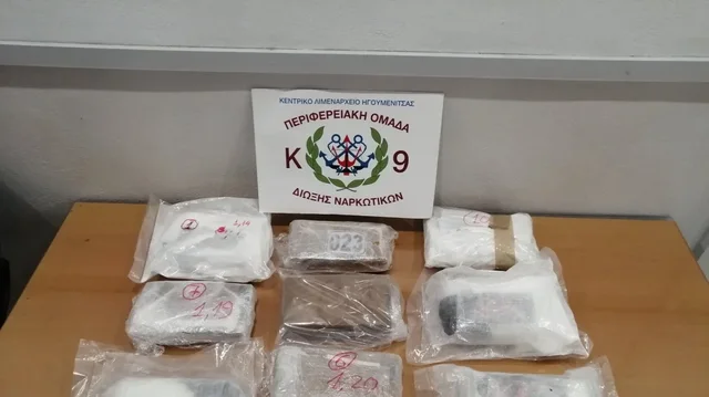 Qeni zbuloi dhjetë pako najloni të fshehura brenda një kuti të transportuar nga kamioni i 59-vjeçarit, i cili mbërriti në Igumenicë me linjë nga Ankona e Italisë. Brenda tyre ishte paketuar kokainë me peshë 11 kilogramë e 540 gramë, vlera e së cilës llogaritet në 400 mijë euro.